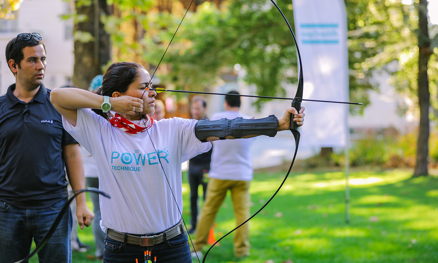 Los equipos participan en una experiencia de arquería, desarrollando habilidades de comunicación, trabajo en equipo y disciplina.