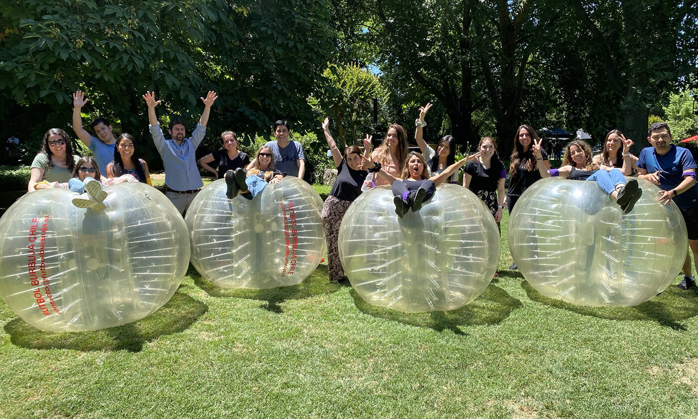 Partidos de fútbol dentro de burbujas, fomentando la diversión, integración y trabajo en equipo.