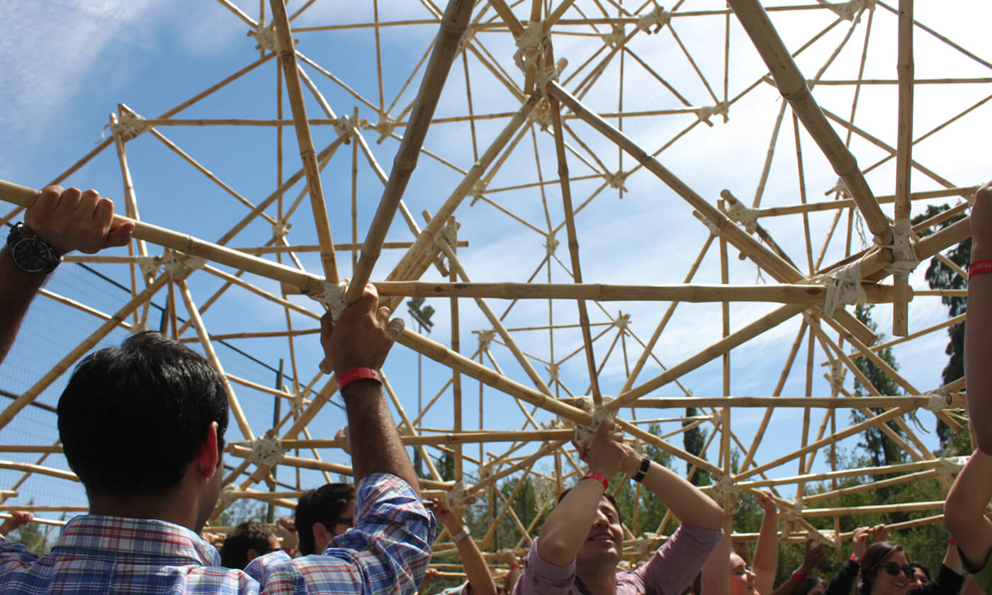 Actividad que muestra cómo la unión y el trabajo en equipo logran grandes resultados. Los equipos construirán una gran pirámide utilizando bambú, el material más sustentable del planeta.